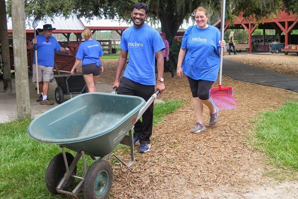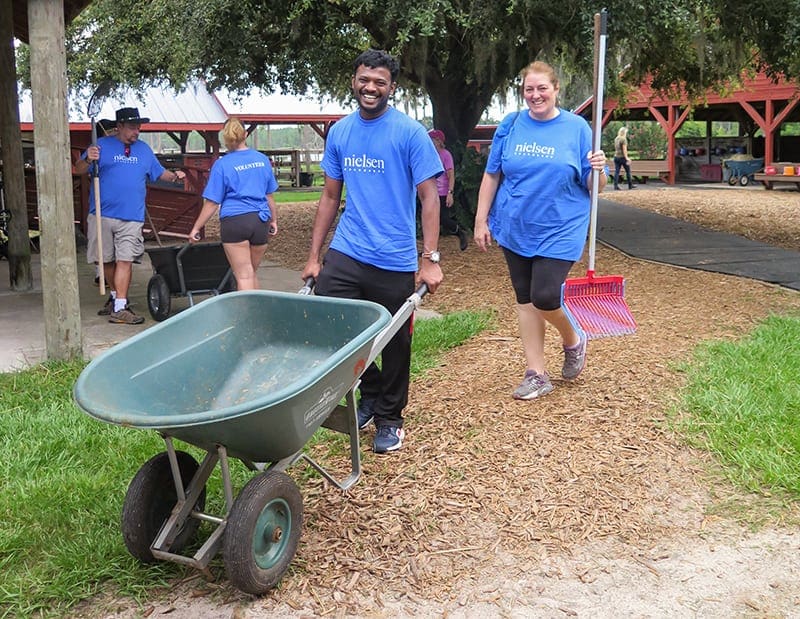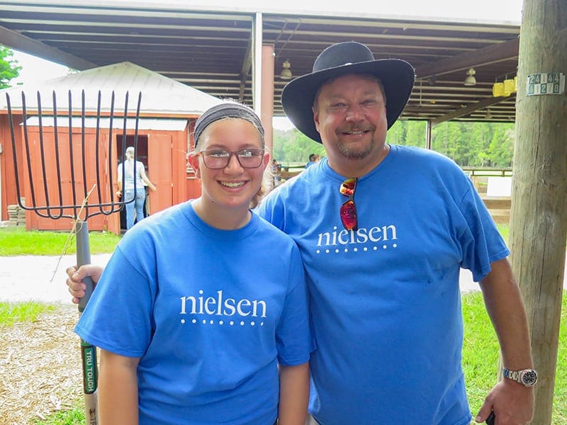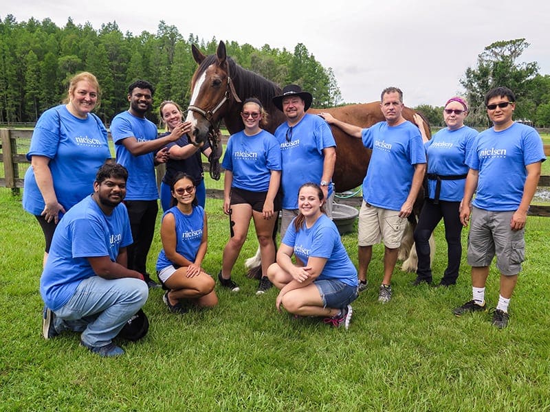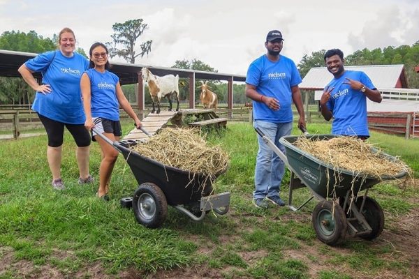 Volunteers from Nielsen visited Quantum Leap Farm for Nielsen Global Impact Day! They worked hard cleaning stalls and maintaining the goat pens. Quantum Leap Farm operates with the help of over 600 volunteers a year, and we are very appreciative of the generosity of our community. Thank you!