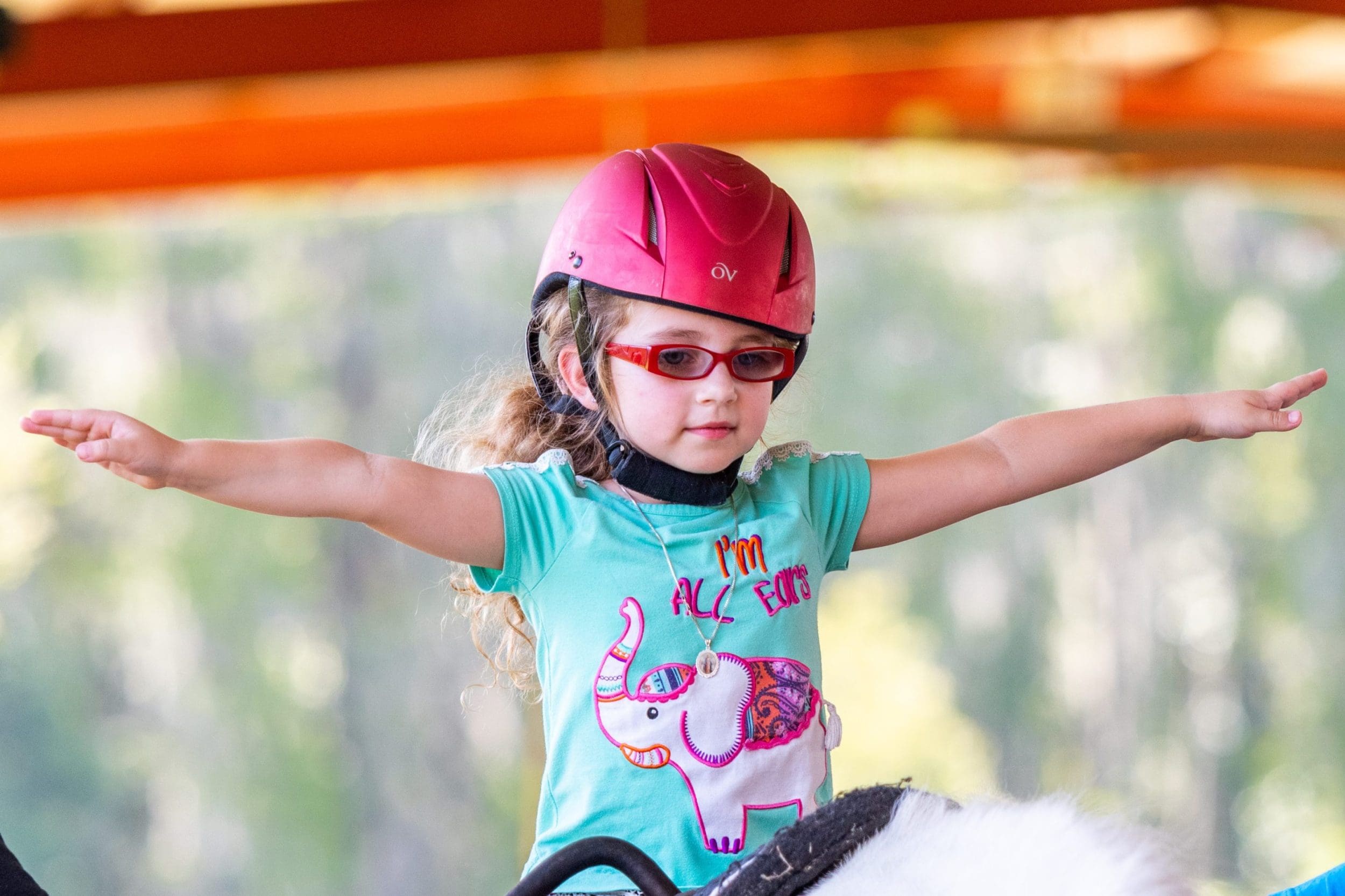 - Your child should wear loose, comfortable clothing and closed-toed shoes if possible. Wearing a helmet is mandatory in all mounted sessions so we will review if child is able to tolerate the helmet.