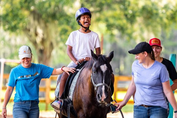 - Depending on child’s tolerance of the equine movement, the therapist may incorporate various positions such as riding rear facing, lying back or on belly, sideways sitting to assist your child’s physical or sensory needs.