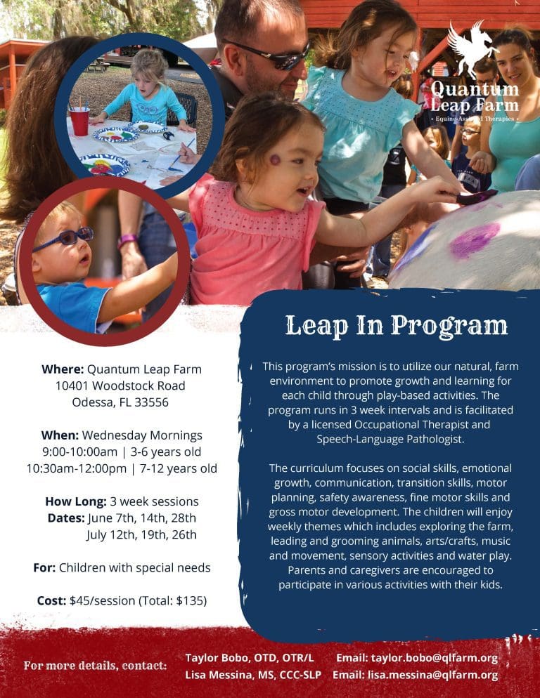 Quantum offers physical and speech therapy using the horse’s movement to strengthen core, balance, focus and support the systems that impact speech, language, social communication, cognition and swallowing.